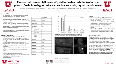 Session: Natural history of the development and resolution of Achilles tendon, patellar tendon, and plantar fascia sonographic abnormalities over two years in a collegiate athlete cohort.