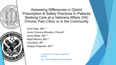 Session: Assessing Differences in Opioid Prescription & Safety Practices In Patients Seeking Care at a Veterans Affairs (VA) Chronic Pain Clinic or in the Community
