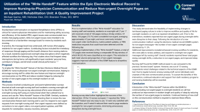 Session: Utilization of the "Write Handoff" Feature within the Epic Electronic Medical Record service to Improve Nursing-to-Physician Communication on an Inpatient Rehabilitation Unit