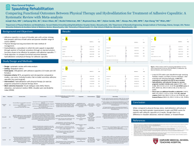 Session: Comparing functional outcomes between physical therapy and hydrodilatation for treatment of adhesive capsulitis: a systematic review with meta-analysis
