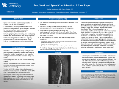 Conclusions: This case highlights the diagnostic challenges of spinal cord infarction and the importance of subtle exam findings in distinguishing ischemic from inflammatory causes of acute paralysis. Early recognition is critical, but prognosis varies based on the extent of ischemic injury.