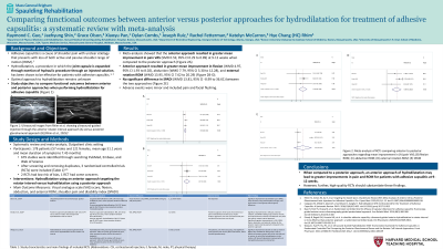 Session: Comparing functional outcomes between anterior versus posterior approaches for hydrodilatation for treatment of adhesive capsulitis: a systematic review with meta-analysis